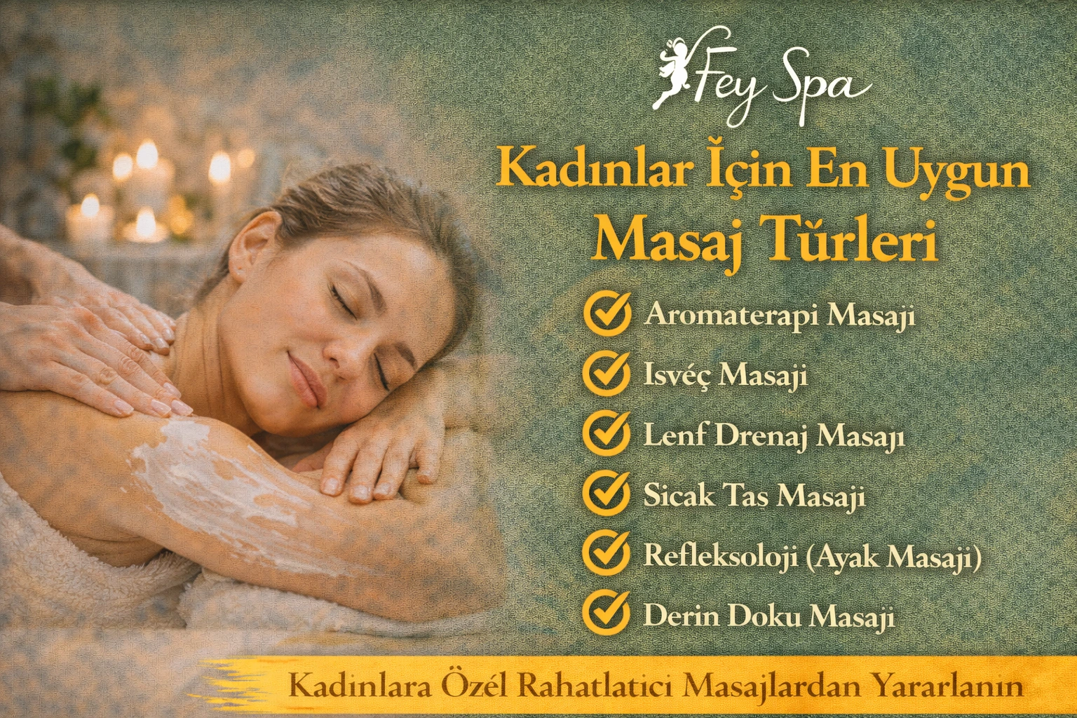 Kadınlar için en uygun masaj türleri, kişinin ihtiyaçlarına ve beklentilerine göre değişiklik gösterir. Aromaterapi masajı, İsveç masajı, lenf drenaj ve sıcak taş masajı gibi uygulamalar; hem fiziksel hem de zihinsel rahatlama sağlayan en etkili seçenekler arasında yer alır.